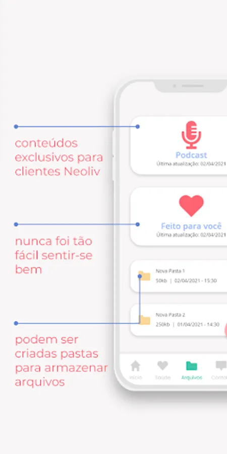 In addition to the face-to-face, online service, your experience will be even more incredible here on the NeoLiv- Elaine Mardegan app, with development materials, learning and information produced with great care to make you feel happier.