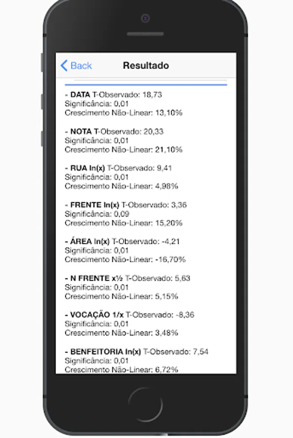 The application will receive data and can deliver the value of analysis of the property. The data will be previously processor and the user will receive the result on the application screen.