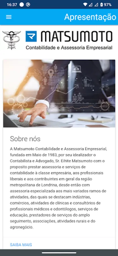 Matsumoto Contabilidade e Assessoria Empresarial, founded in May 1983, by its creator the Accountant and Lawyer, Mr. Eihite Matsumoto with the purpose of providing advisory and accounting services to the business class, the professionals and the taxpayers in general of the metropolitan region of Londrina, since then with specialized advice to the most varied branches of activities, of which stand out industries, businesses, activities of clinics and offices of medical professionals and dentists, education services, service providers of wide follow-up, associations, rural activities and the agribusiness.