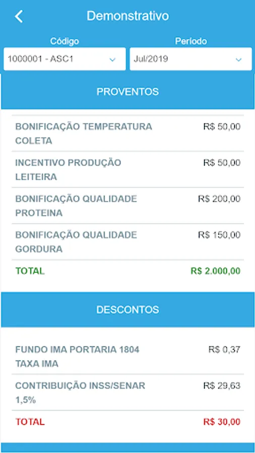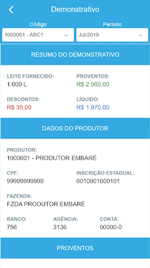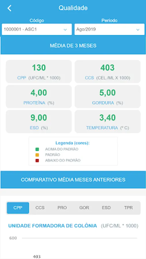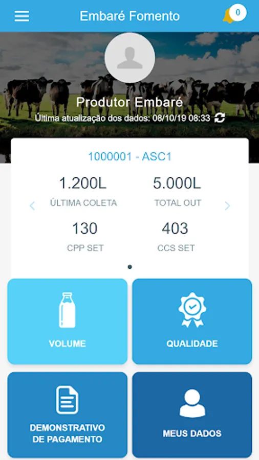 With the application, the producer updates his results in a simple and practical way, being able to track the volume of milk provided, conclusions of quality analyzes and the payment statement.