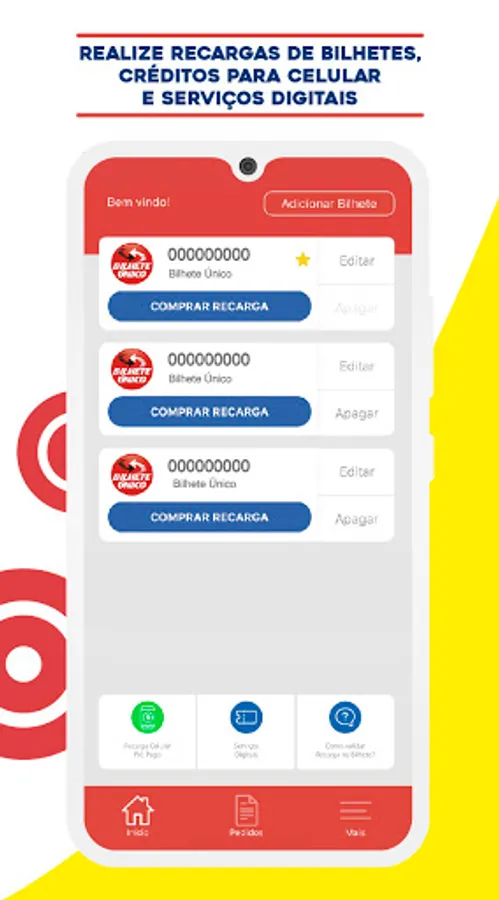 With our Bilhete Único Ponto Certo app, you can upload your Bilhete Único São Paulo, insert credits on your prepaid cell phone and even buy credits for digital services such as movies, games and e-books, all of this in a simple and fast way.