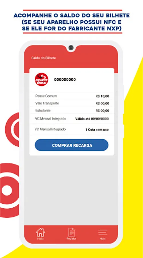 NOTE: to see the Bilhete Único balance in the app, your cell phone's NFC must be from the NXP manufacturer. Unfortunately, if it is not from this manufacturer, it is not possible to read the Single Ticket (even if your device has NFC).
