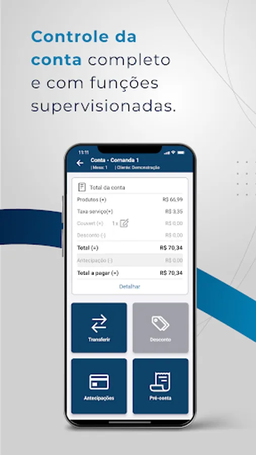 Account control via the app is complete and has supervised functions to ensure greater security and accuracy. The application also allows the visualization of commands or open tables and real-time monitoring of the status of orders.