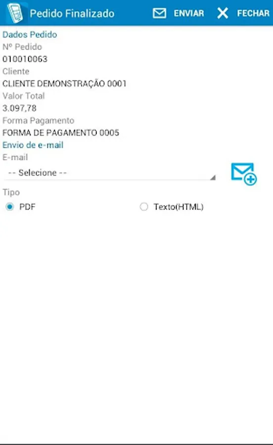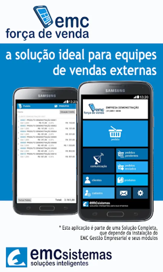 This application is part of a complete solution consisting of EMC Management, EMC Sales Force - Order Central and issues fiscal document (EMC NF-e or EMC Commercial Cash Front) which may be purchased at http: // www.emcsistemas.com.br