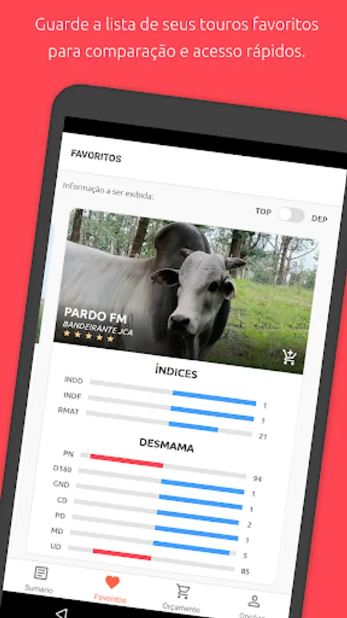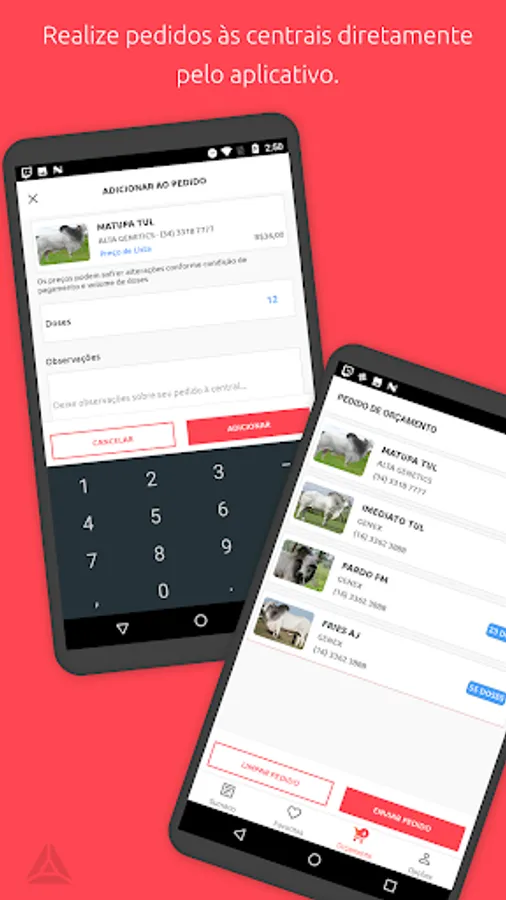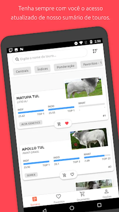 With our application, it is possible to filter, sort, know the details and genealogy of each bull, make orders to the main trading centers of semen in Brazil, create your own index and more.