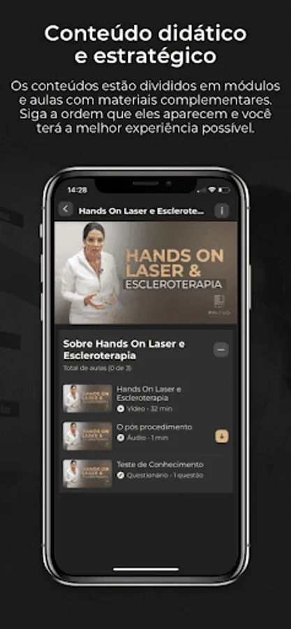In this app you will find all the courses created by Lívia Lyra and the PhleboAcademy team for the different moments of your career.