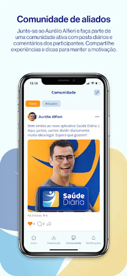 2nd PILLAR: COMMUNITY OF ALLIES: The Saúde Diária platform offers an active community of more than 15,000 students with the same objective, which allows users to be supported and motivated by other members. This community also offers the possibility to share experiences and tips to keep motivated.