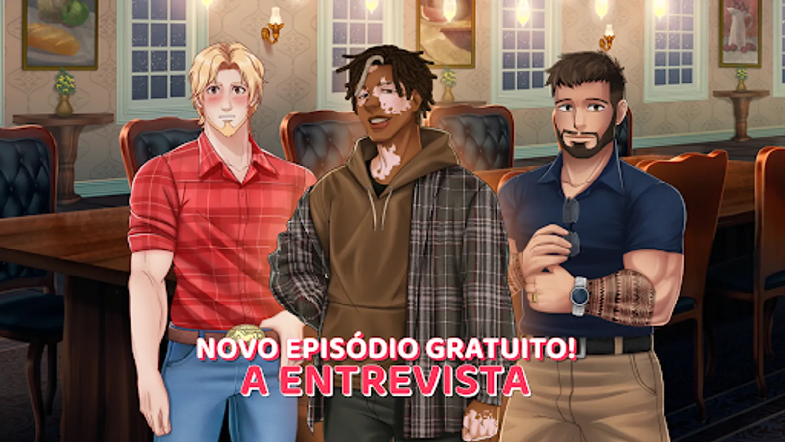 Entre Laços e Amassos is a game divided into episodes where you create your own love story, customize your character and acquire special images. Episodes are released as early access for 1 month and then it's free to play for the first time.