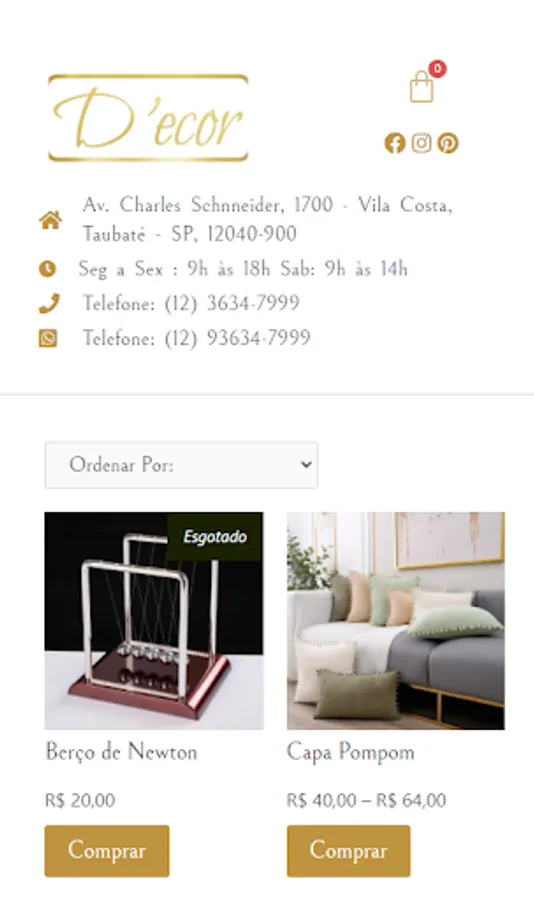 The D´cor store is fictitious, but it is an example of the Virtual Catalog tool where it is possible to organize your stock, automate daily tasks and make your sales grow. In addition, it will allow you to reach more people with the internet, save on printing and distributing physical catalogs.