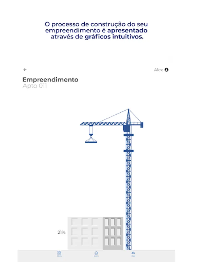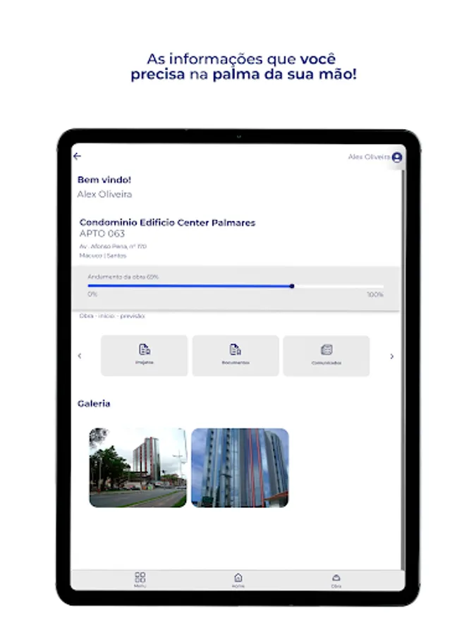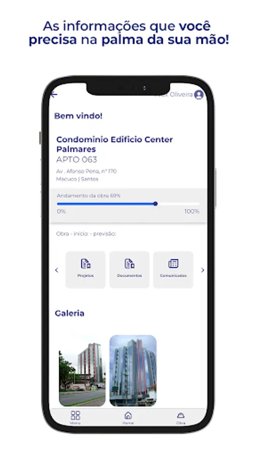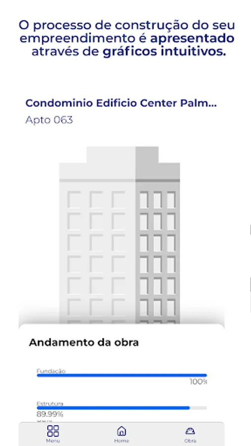You can track your projects on a single screen, navigating through each one, viewing the progress of the project through photos, easy-to-understand graphs based on the project's construction stages, presentation videos, property floor plans, location maps, and more.