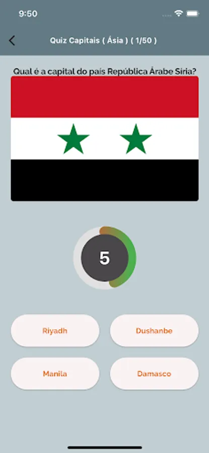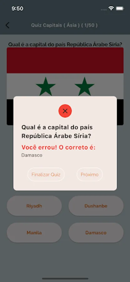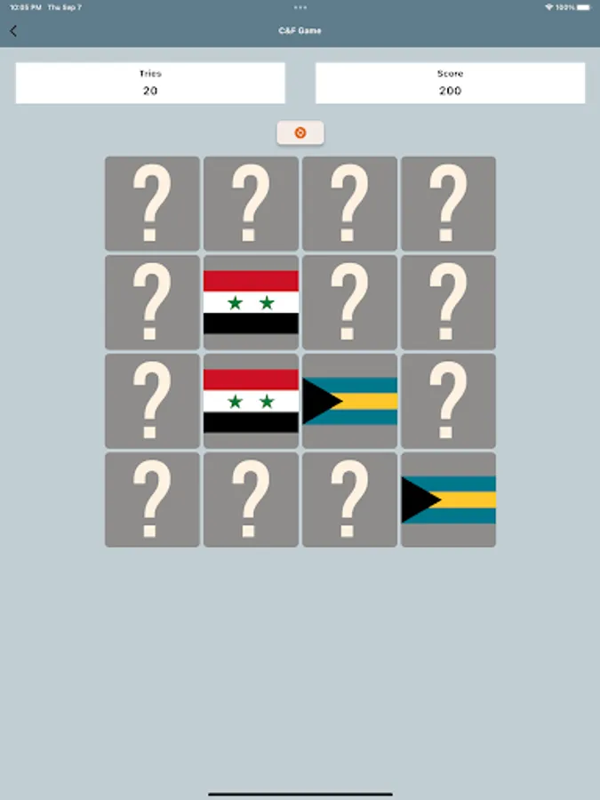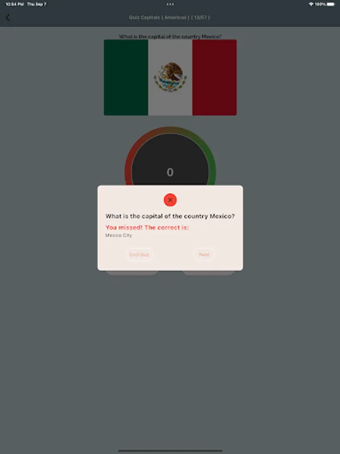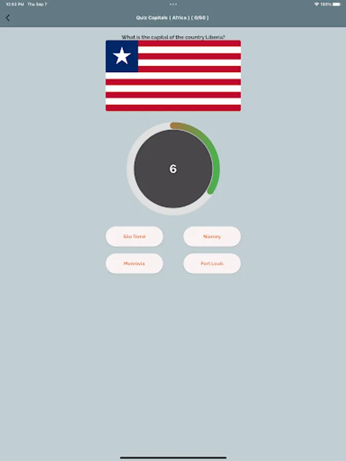 In the "Flags" mode, you must guess the flag of the country displayed on the screen. In the "Capitals" mode, you must guess the capital of the country corresponding to the flag displayed on the screen.
