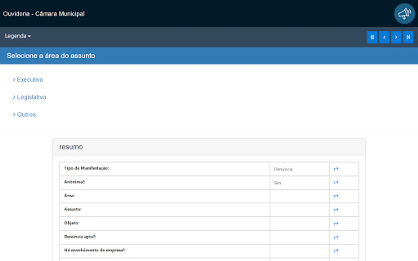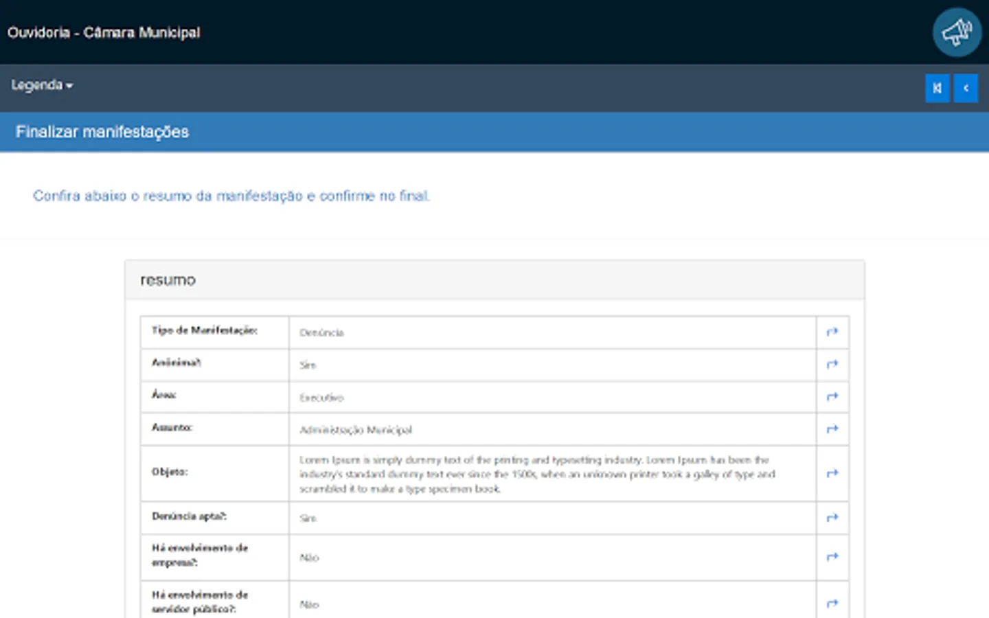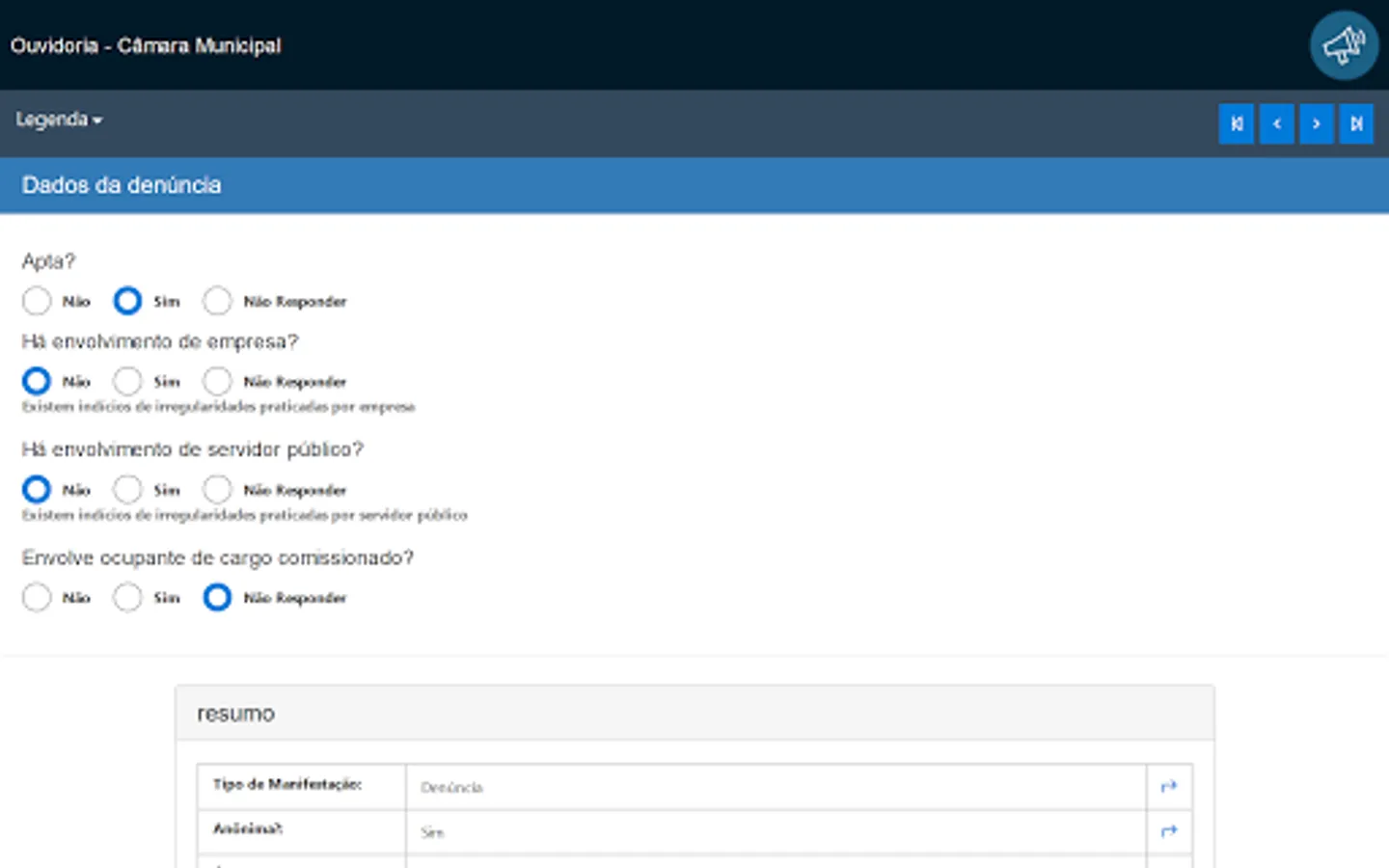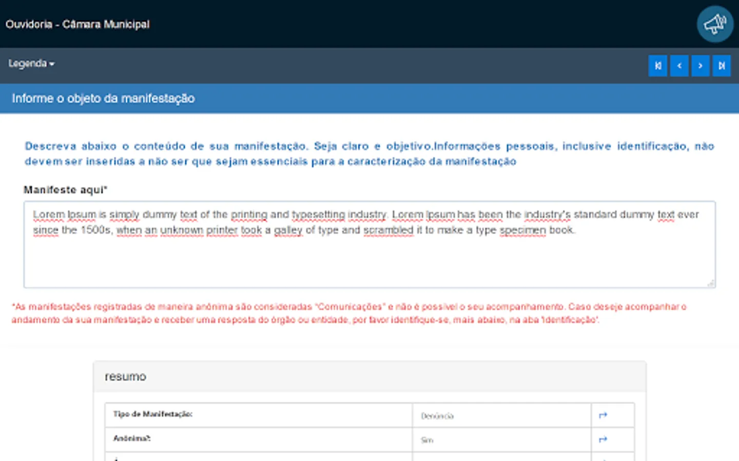 This application is intended for receiving and monitoring public manifestations of citizens with the Ombudsman, in compliance with Law 13.460 / 2017.