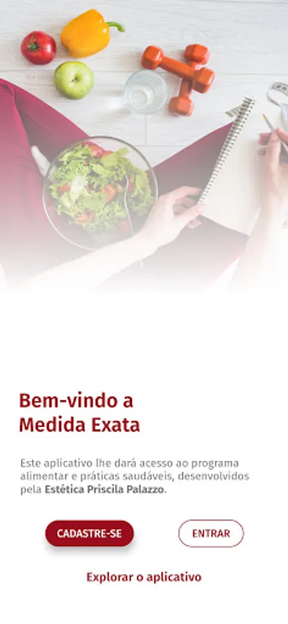 This is the Exact Measure application that will give you access to your life change, developed by Estética Priscila Palazzo, where you can learn more about our weight loss programs, food tips, exclusive supplements. Also have access to exclusive promotions of our brand. And if you are a licensed Palazzo, you can use this app as a monitoring platform for your Exact Measure customers. The application has features that allow greater interaction between customers and the licensee, through the sharing of experiences, evolution in weight loss, rankings and much more.