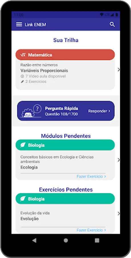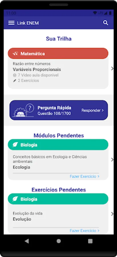 Application focused on helping the student during the preparation for ENEM.