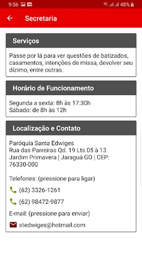 Application of Santa Edwiges Parish - Jaraguá - GO - Brazil