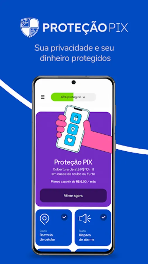 Protect your money and privacy if your phone is stolen. Use PIX Protection to locate your device, lock the device remotely, erase data remotely and get stolen values back.