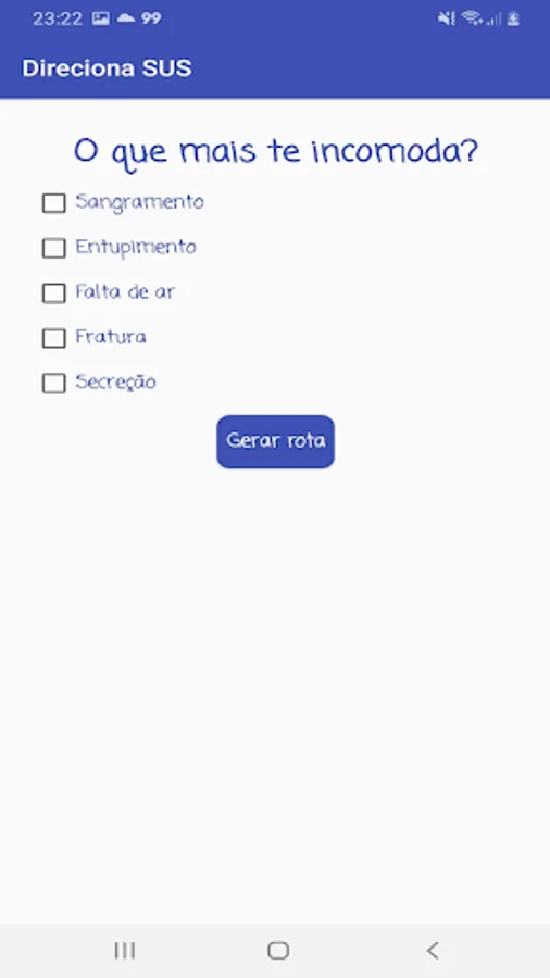 Direcciona SUS is an application designed to help patients by directing them to SUS care services according to their symptoms.
