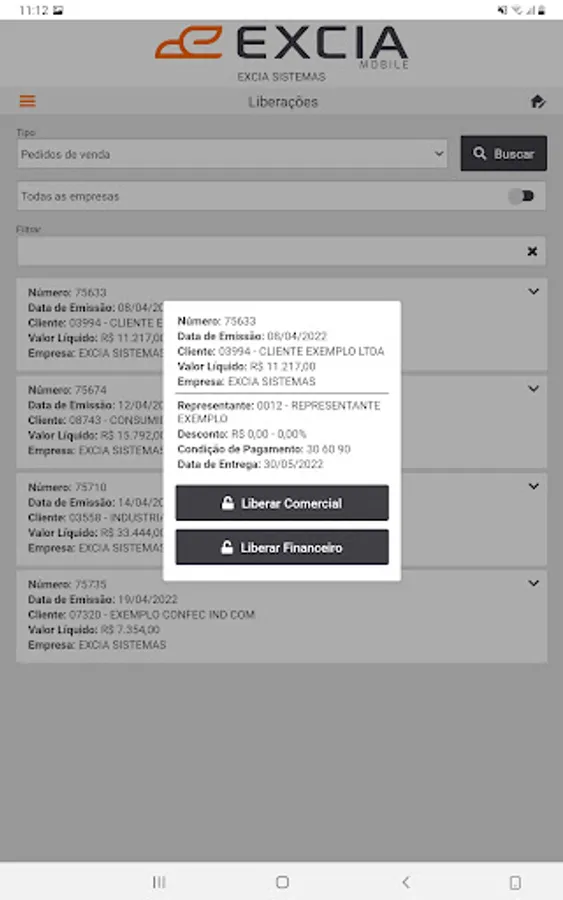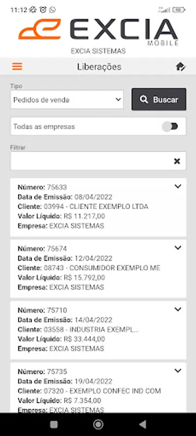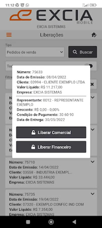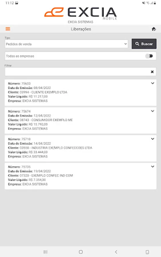 Application integrated to ERP EXCIA Sistemas.