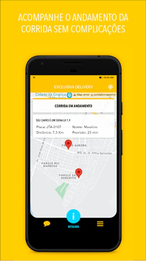 Our application allows you to call one of our motorcycle taxis and follow the vehicle's movement on the map, being notified when it is at your door.