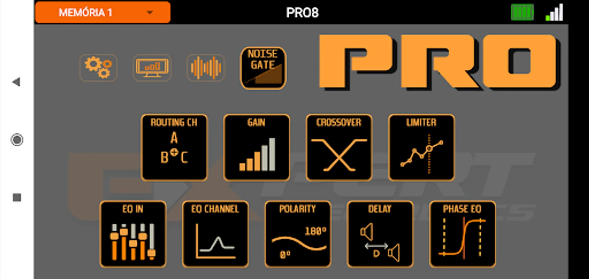 Control of the EXPERT PRO8 audio processor configurable via bluetooth.