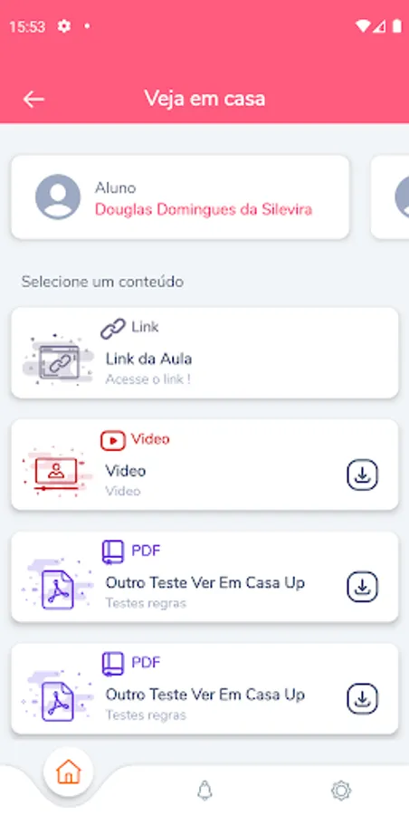 - Class content: The application brings in an organized manner in chronological order all the contents that have been studied in class, allowing students to download them, if they want to review or store them for future reference.