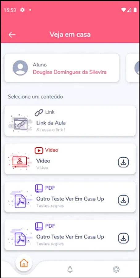 - Lesson content: The application brings in an organized chronological order all the contents that were studied in the classroom, allowing students to download them, if they want to review them or store them for future consultations.
