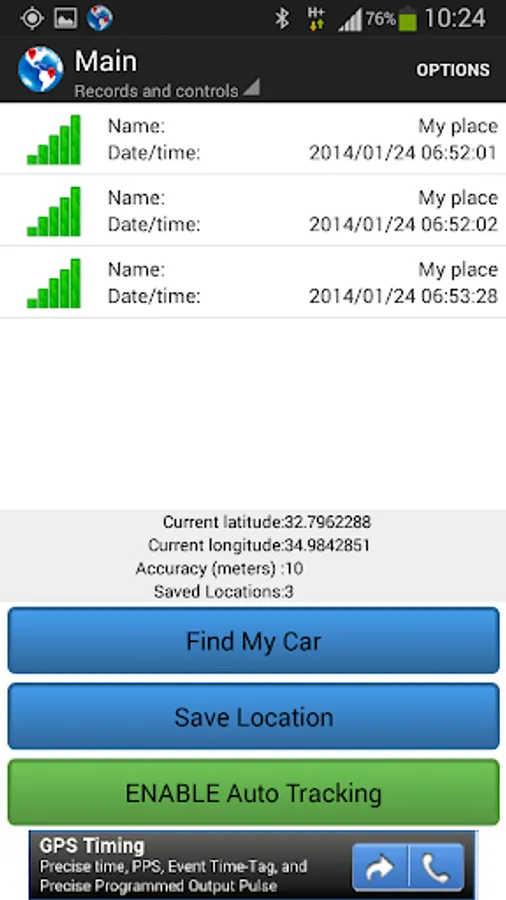 Our innovative applications will also tell you the accuracy of location data - to m. The accuracy can be saved with a value from 1 to 1000 meters. Save Latitude and Longitude with ease and keep track of where you've been - anywhere you have a GPS or availability of network coverage.