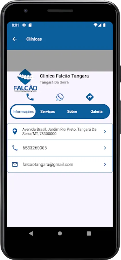Download the app right now and get to know the space and comfort of Falcão Ortodontia through the photos available for each location.