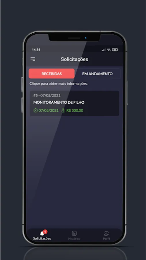 When accessing the application the professional will find work requests with the offered value, being able to accept or not. Upon accepting the service he will be informed of accepted requests.