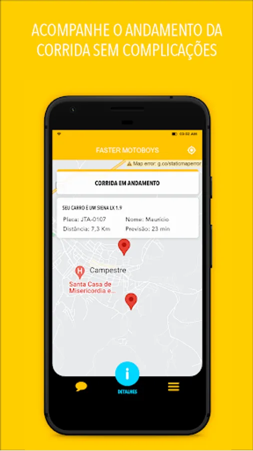 Our application allows you to call one of our motorcycle taxis and follow the vehicle's movement on the map, being notified when it is at your door.
