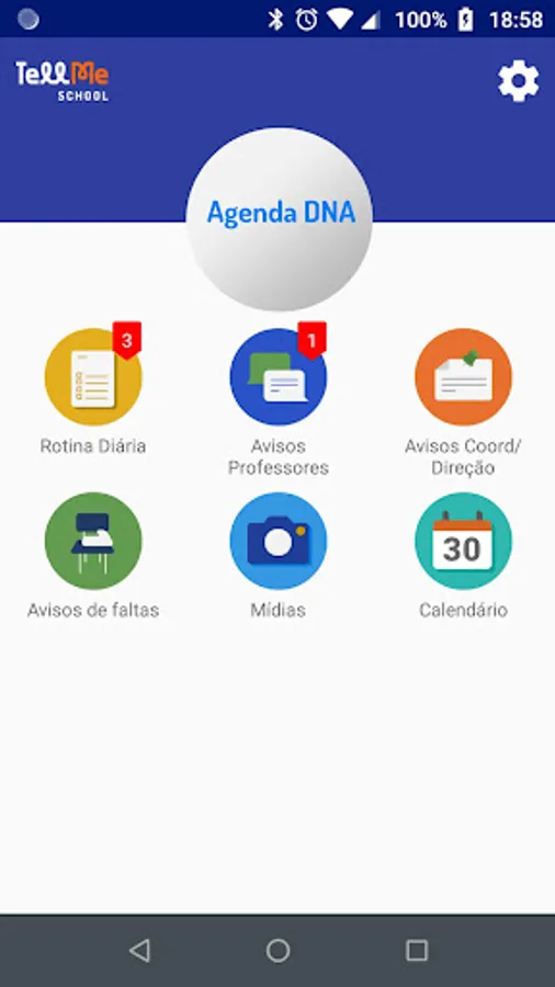 The Tellme School DNA Agenda application is an electronic daily school agenda optimized in the form of an application where students/guardians can instantly access all the information that the school passes on to students through their cell phones. It is, therefore, a mobile app used by students/guardians to receive daily information of interest, generated by teachers/school coordinators, also allowing them to send information to the school.