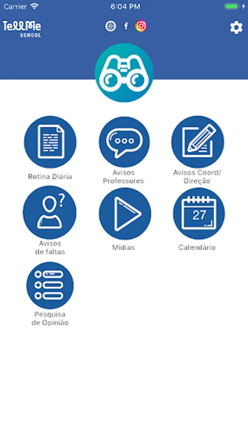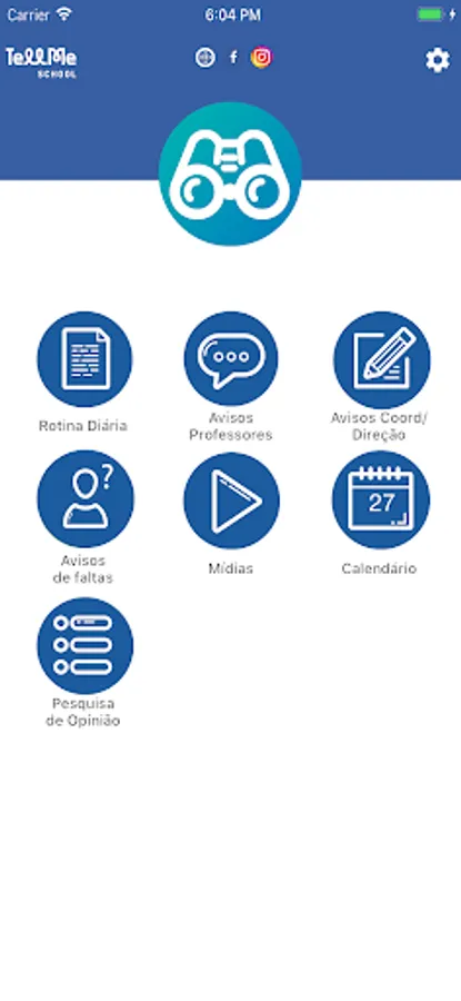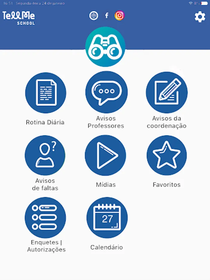 The Binoculo By TellMe application is an electronic daily school diary optimized in the form of an application where students/guardians can instantly access all the information that the school passes on about students through their cell phones. It is, therefore, a mobile app used by students/guardians to receive daily information of interest, generated by teachers/school coordinators, also allowing them to send information to the school.