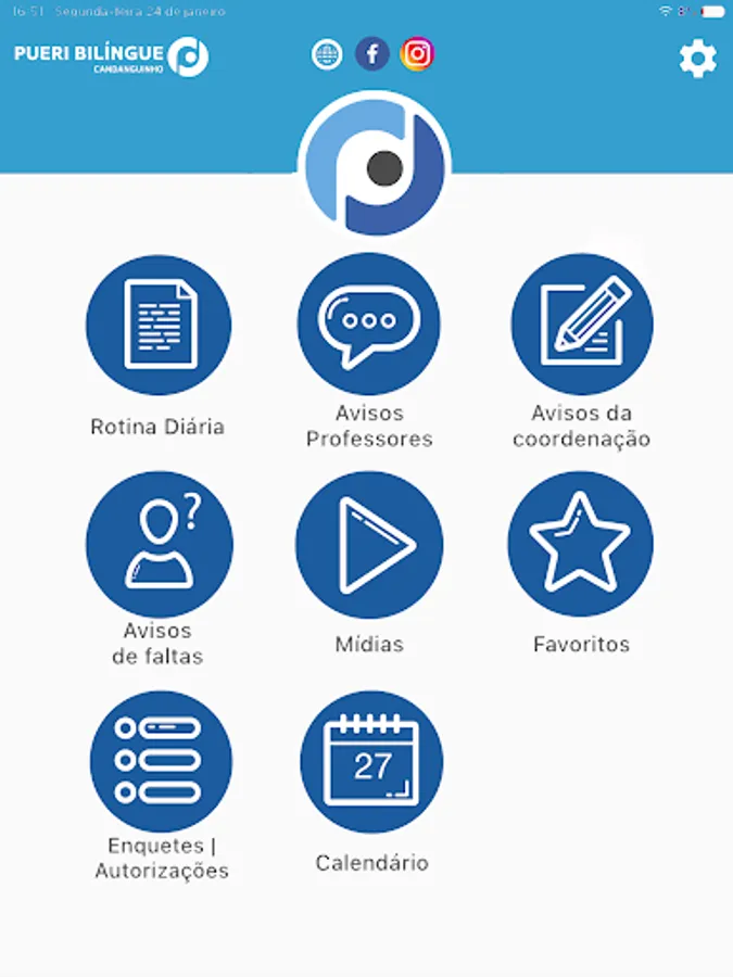 The Hello Pueri Candanguinho application is an electronic daily school diary optimized in the form of an application where students/guardians can instantly access all the information that the school passes on about students through their cell phones. It is, therefore, a mobile app used by students/guardians to receive daily information of interest, generated by teachers/school coordinators, also allowing them to send information to the school.