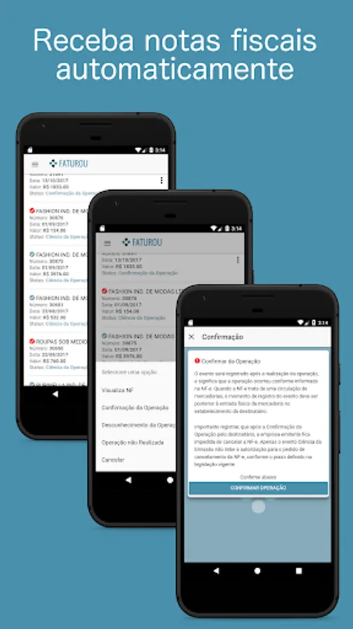 - See, confirm or deny notes issued against his CNPJ. The loading of the notes is automatic and you can use the electronic manifestation to accept or refuse the invoice.