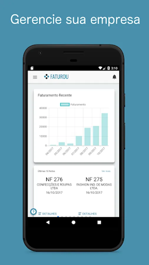 Manage your business with the mobility you need. Billed The APP provides the facility for you to control your sales, your receivables and accounts payable.