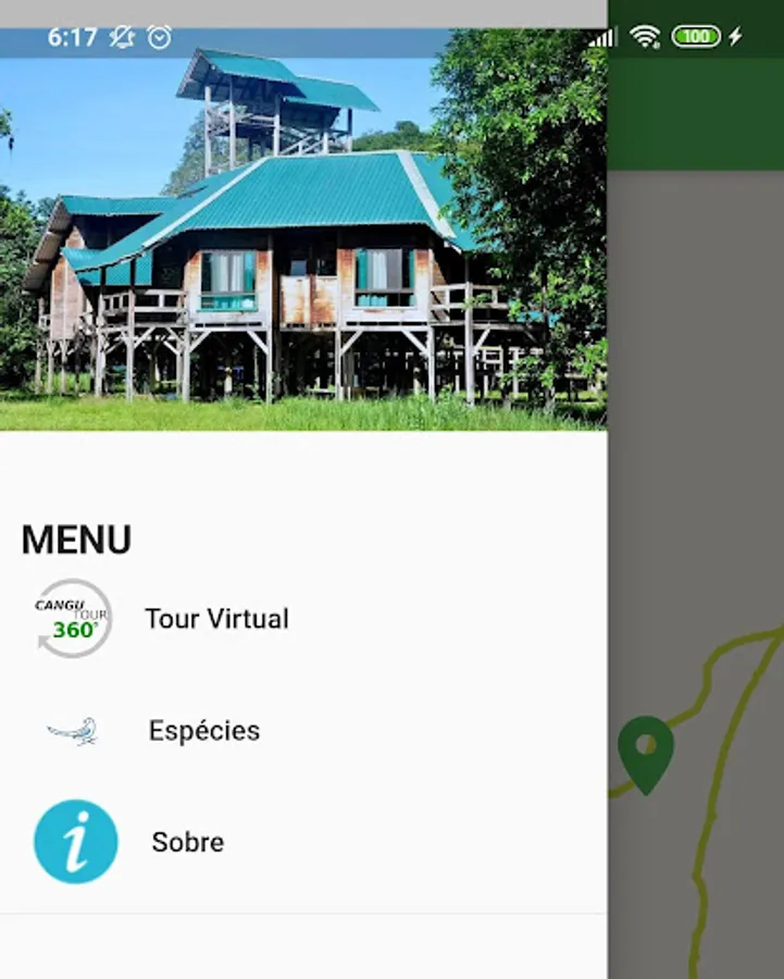 The Cangutour 360º mobile app, consists of the virtual tour and the georeferencing of the main trails, beaches and headquarters of the Private Reserve of Natural Heritage (RPPN) Canguçu, with the purpose of providing tourists, students and researchers with additional information about this meeting of two biomes (Cerrado and Amazon Forest) unique in the country.