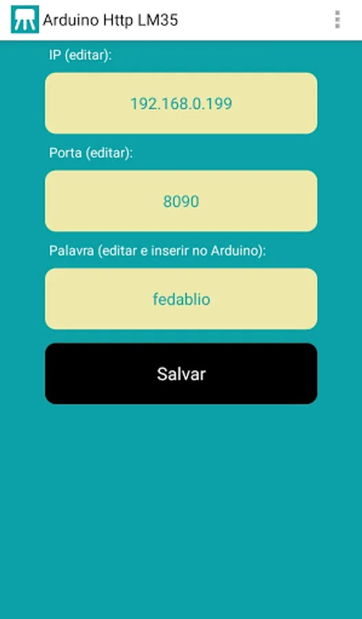 We arrived at another Android application aimed at Arduino and Ethernet shield. With the Arduino Http LM35 app, an Arduino Mega or Uno (both tested), an ethernet shield and an LM35 temperature sensor, we can read ambient temperatures. If the shielded sensor model is used, it is possible to read the temperature submerged in water, for example.