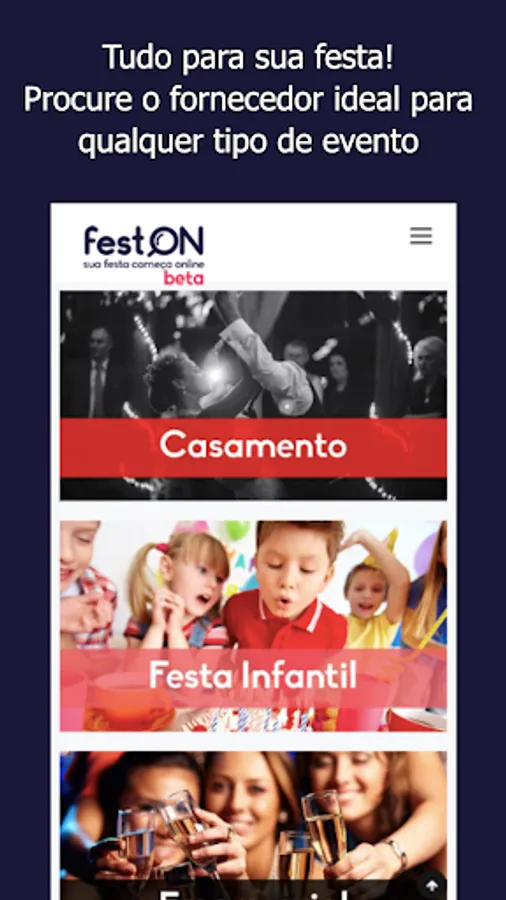 festON is an app for finding the best party and event providers. From a barbecue grill to a full buffet for your wedding. Find suppliers for children's parties, corporate, wedding, debutantes among other options!
