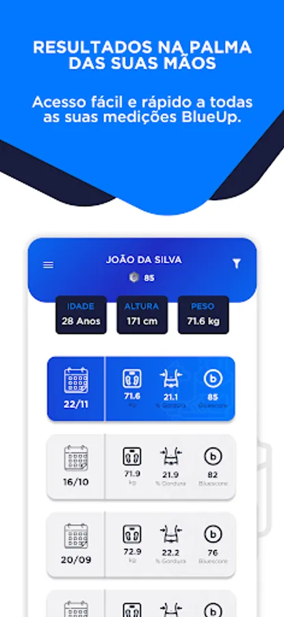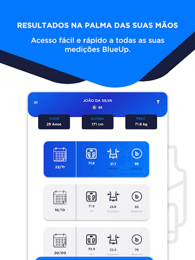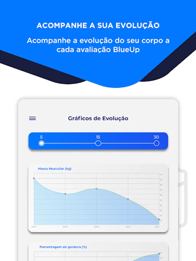 With intuitive charts and detailed bioimpedance reports, BlueUp allows you to clearly visualize your fitness journey, track growth, observe trends and make informed decisions.