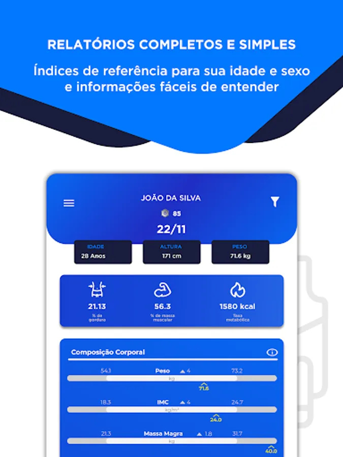 Celebrate your achievements by sharing bioimpedance assessments directly from the app. Share progress with friends, family and fellow gym members, building a community of support and inspiration.