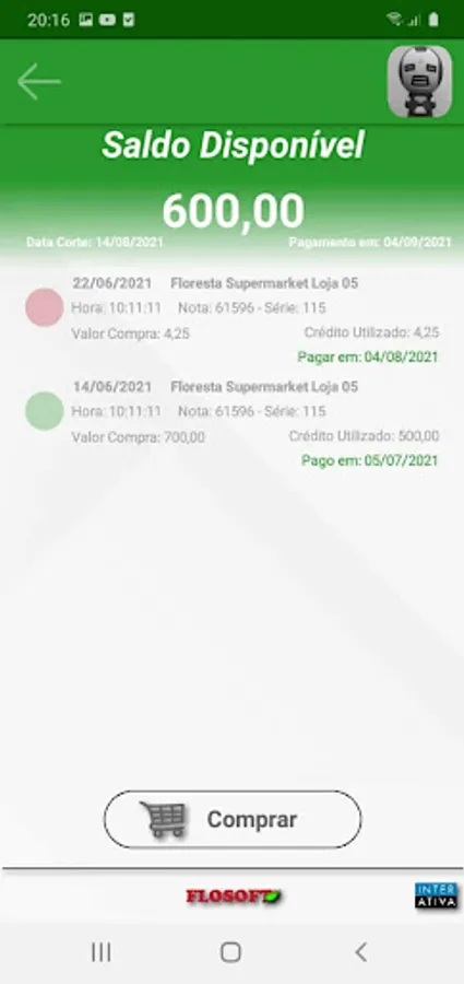 Flosoft Mobile is a tool for employees of the Floresta organization to withdraw their pay stubs, check points, check scales, request loans, check their messages.