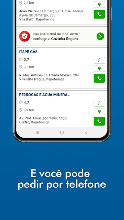 The app provides a list of Fogás resellers and other brands to consult so you can find the nearest reseller via your address or location to order by phone.