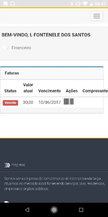 App created to facilitate access of customers via smartphone to the subscriber central FontNet.