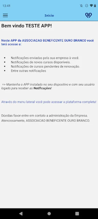 Portal for Ouro Branco Hospital employees with access to training and notifications.