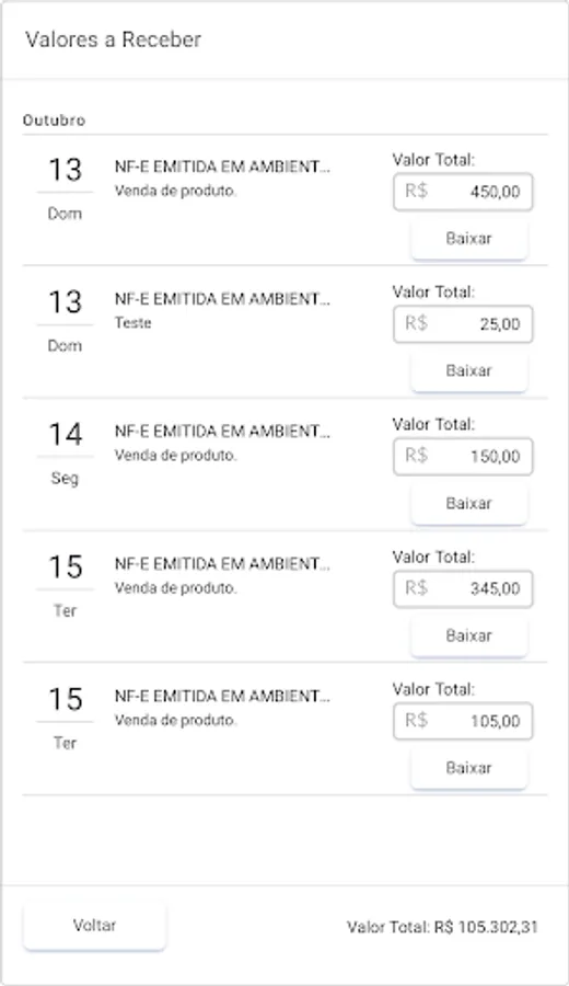 - Display of receivables in the current date / week and month;
