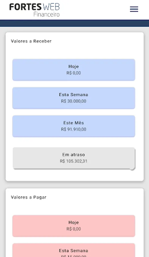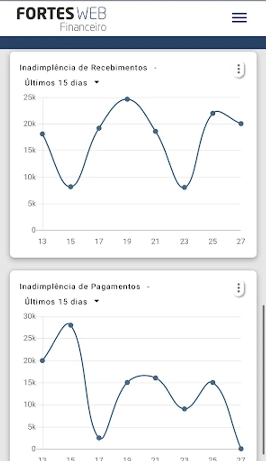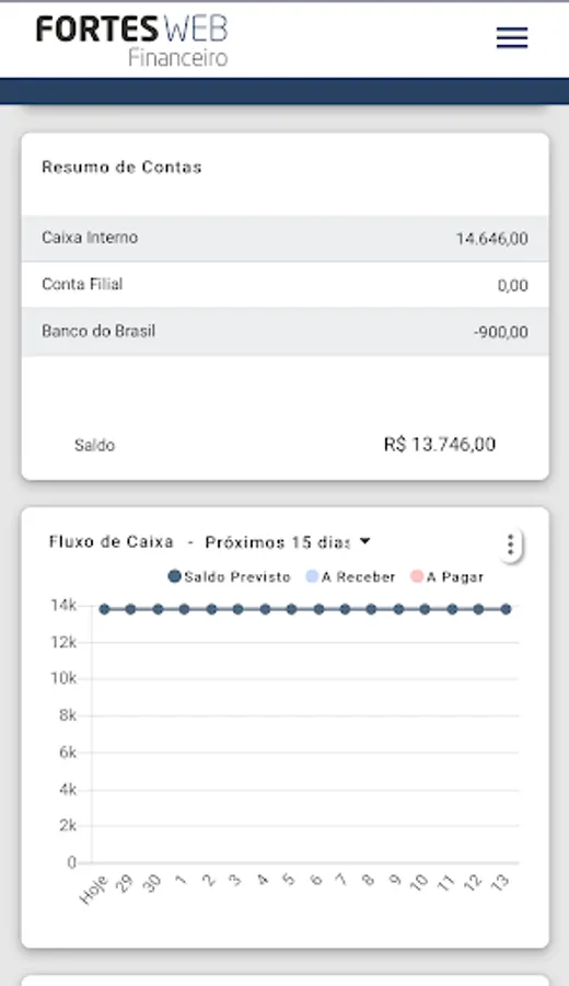 Fortes Tecnologia's app for viewing the financial management system dashboard.