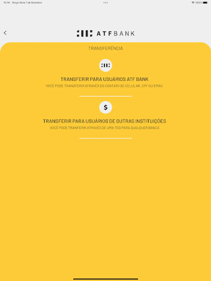 ATF Bank is the digital account that makes your life easier. You don't need an invitation and you don't even have to wait in line to approve your registration. In a friendly way and with a few clicks, you open your account. You do everything on your cell phone, without wasting time in queues and without bureaucracy.