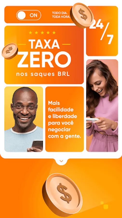 - Withdrawal in R$ instantly and with ZERO RATE, every day.