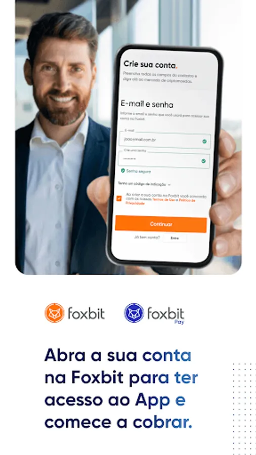 After validating the registration, just accept the Foxbit Pay terms of use, to make the connection between accounts and download the app.