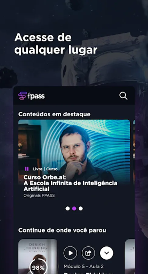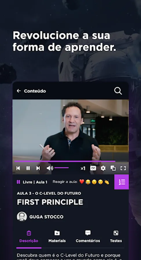 Through our streaming, you will have access to more than 100 content on business, marketing, management, innovation and human skills, made by professionals with great relevance in the market.